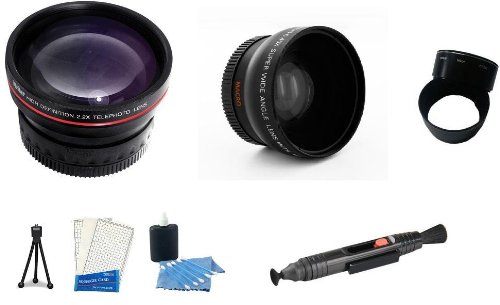 When your digital camera can't get you quite close enough to the action, this 2x telephoto accessory lens will bring the action twice as close to you. It's perfect for all your long-distance photos of sporting events; candid portrait shots; as well as nature and wildlife photography. When you've run out of room and your back's against the wall and you can't seem to squeeze everything you want in the shot, just put on this wide angle lens attachment to get it all in the picture.This 0.45x wide angle attachment more than doubles your camera's wide angle field-of-view. Built-in detachable macro lens allows you to take extreme high resolution close-up shots. Ideal for cataloging small items and focusing on details. Kit comes with Lens Cleaning Pen and a exclusive Deluxe 12 in 1 Camera Cleaning Kit.